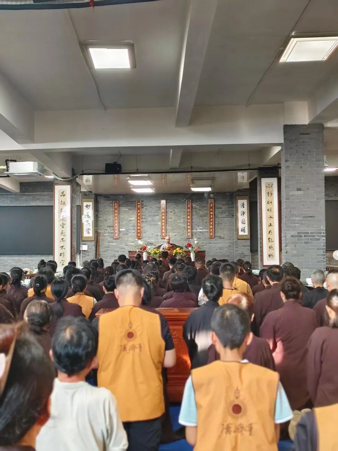因到的晚,因缘下被安排到第一排,一旁是三位“邻友”,与他们仅是偶有眼神沟通,一打照面便觉得他们各个“奇形怪状”却又宝相庄严,天气极热又身穿两层法衣,像极了墙壁上挂着的罗汉。