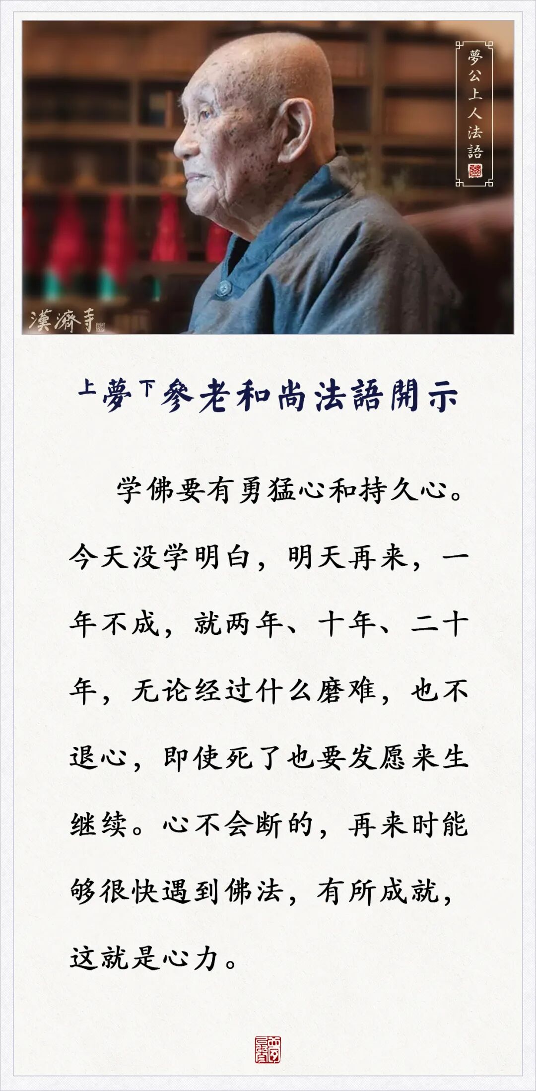 学佛要有勇猛心和持久心,今天没学明白,明天再来 (梦参老和尚)