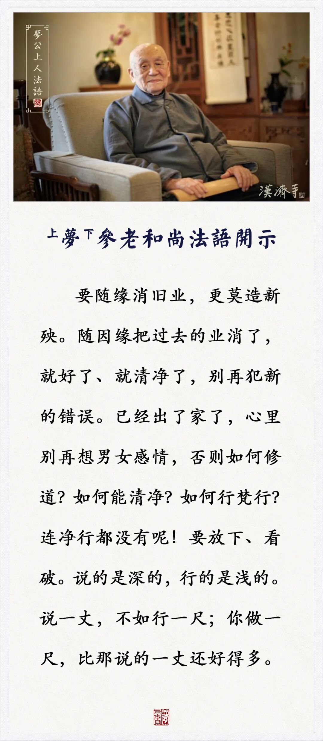 随缘消旧业,更莫造新殃(梦参老和尚)