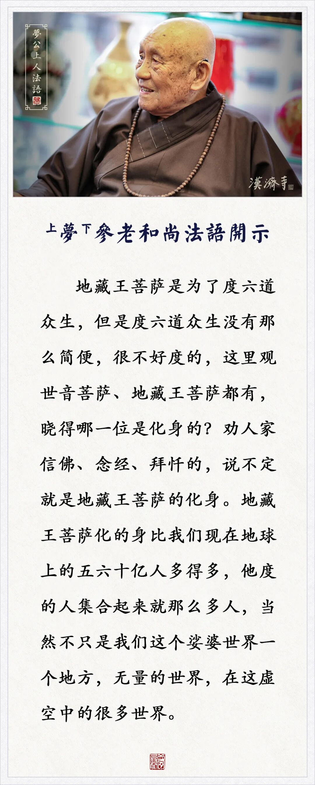 劝人这样做的,说不定就是地藏王菩萨的化身(梦参老和尚)