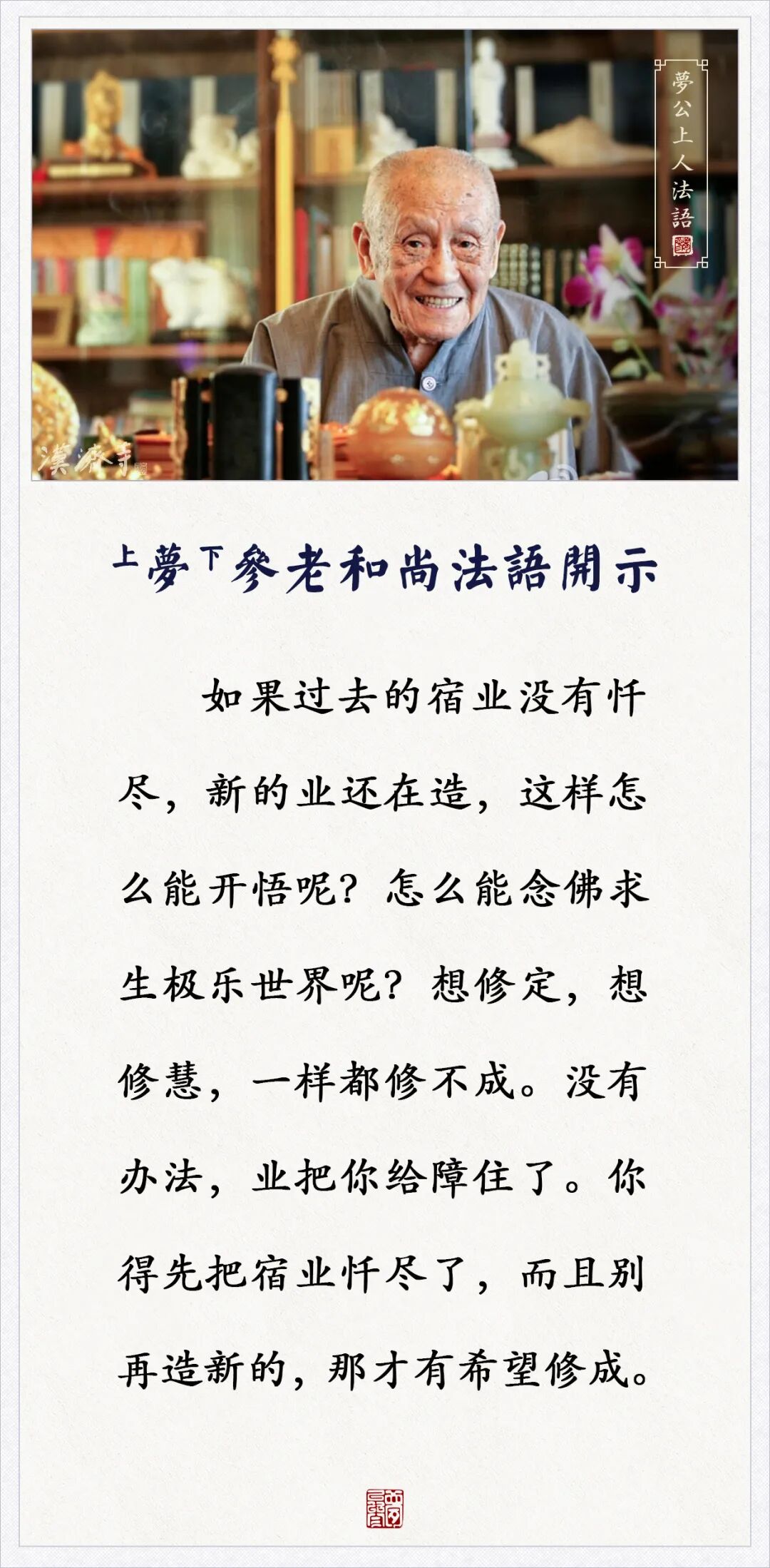 先把宿业忏尽了,别再造新的,才有希望修成(梦参老和尚)