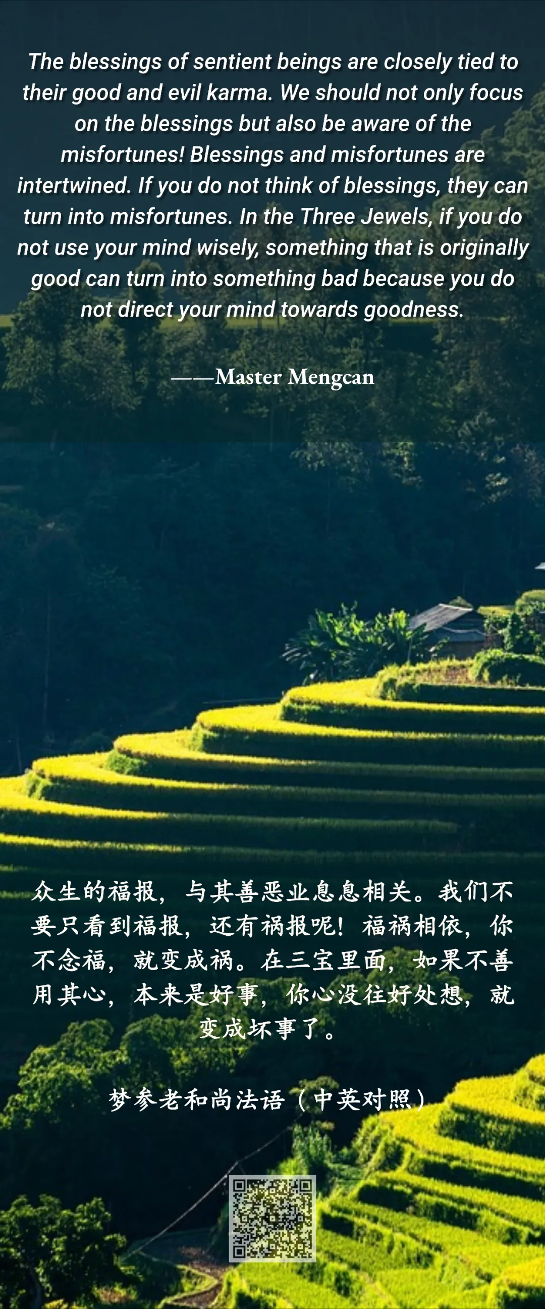 福祸相依,你不念福,就变成祸丨梦参老和尚法语中英对照