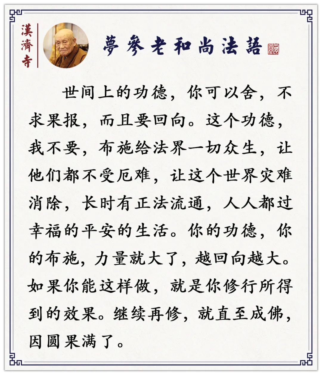 早晨发愿,晚上回向:愿我所做的事业,都回向给众生,使他们早日成佛。同时愿一切众生离苦得乐,这是未来的愿。每天下班要回向,回向给自己的妈妈、爸爸。爸爸、妈妈都在的,给他们回向,让他们身体健康;不在了,回向让他们生极乐世界——不管他们在哪一道,假你们回向的力量、念经的力量,把他们从那一道度到极乐世界,那你们所做的事才不会白干。你们不回向,功德只有一份;回向了,功德变成一百份、一千份、一万份。每天下班一定要回向;早上刚一进来要发愿,要利益众生。千万不要想其他,这样就什么功德都没有了。你们到这儿来都是在行度众生,谁若看到我们的书,看到就开悟、快点成佛、了生死、消灾免难——起码现在就消灾免难。人没有不害病的,当你身体不好,在这个地方上班的时候你就回向,让菩萨加持你。这是真实的,你要建立这个信心。