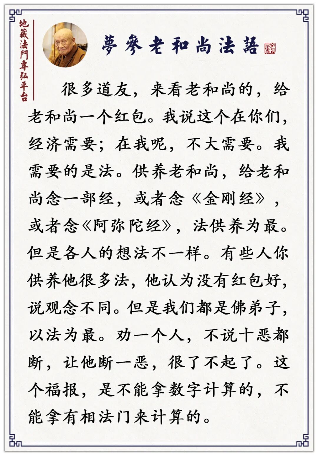 不要太执着,非得花钱供养才心安,法供养为最(梦参老和尚)