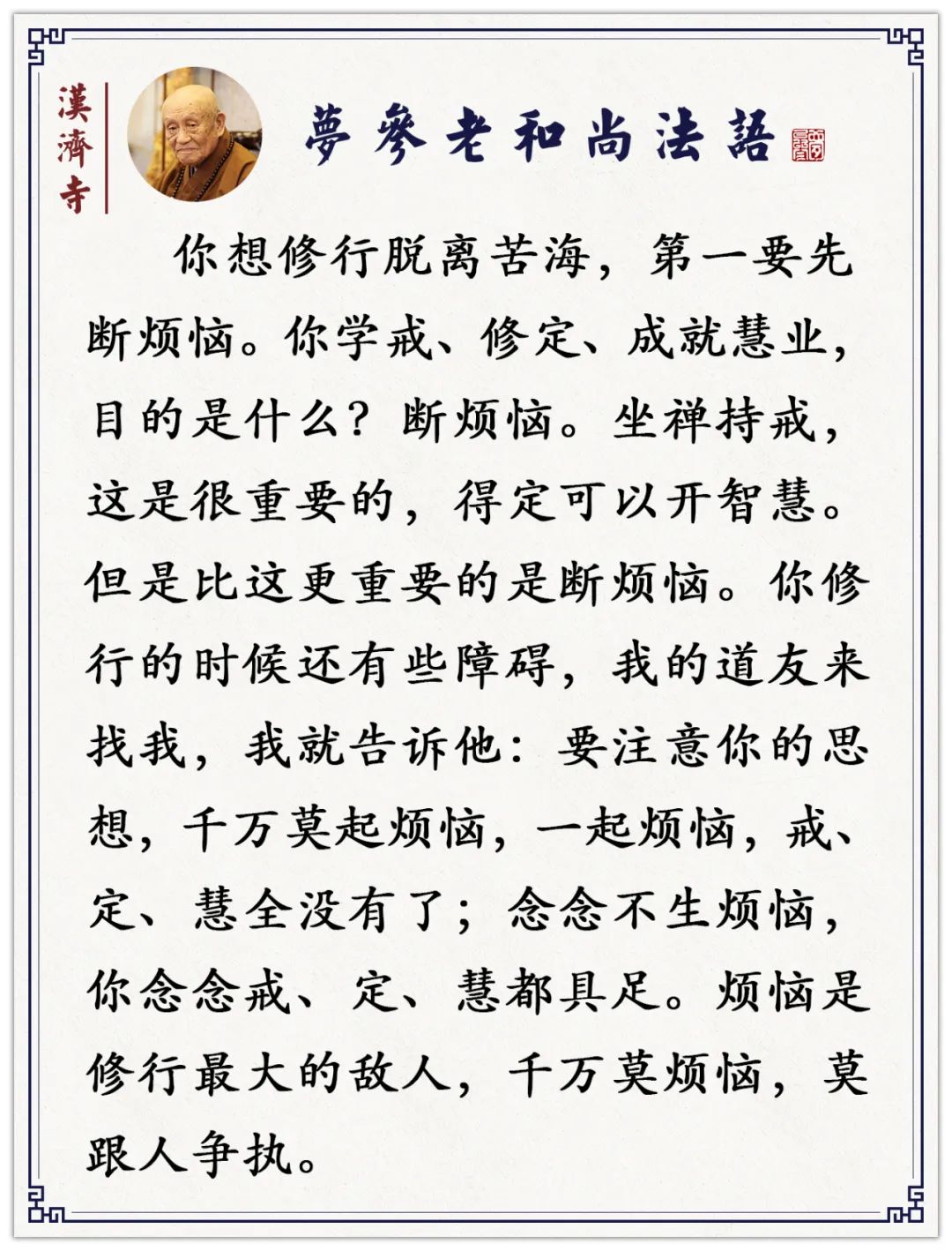 在青岛的时候,不知道弘一老法师跟谁生气,也不晓得是谁得罪他,他也不说话。我跟传贯法师就紧张了。我们想,别人没接近他,或者是我们俩得罪他了,或是惹他烦恼了,我们就给他求忏悔。他就摆头:“跟你们毫不相干。”跟我们毫不相干,那是他自己的内心了,他是对治他内心的烦恼,他用这个方法降伏。他就是这样修的,他绝不说一句话伤害别人。他自己烦恼了,他自己压迫,他就忏悔、不吃饭、不跟你说话,跟谁都不说话。