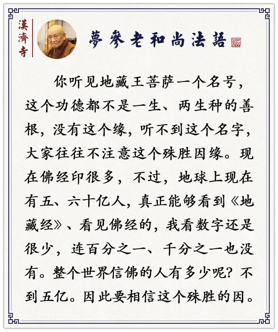 你业障都不大,大了你就遇不着这位菩萨名号(梦参老和尚)