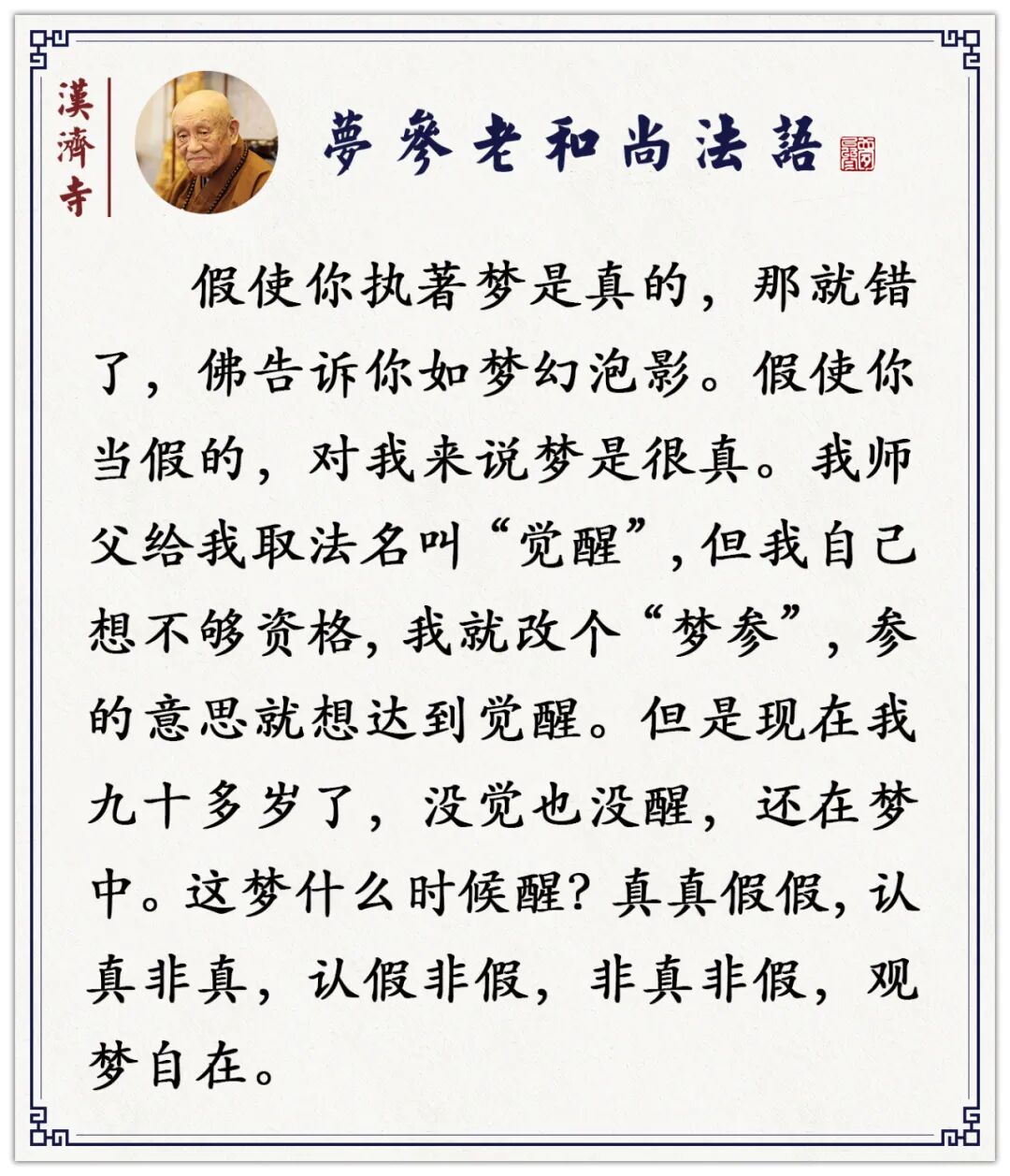 虽说梦是假的,假的也会产生真的(梦参老和尚)