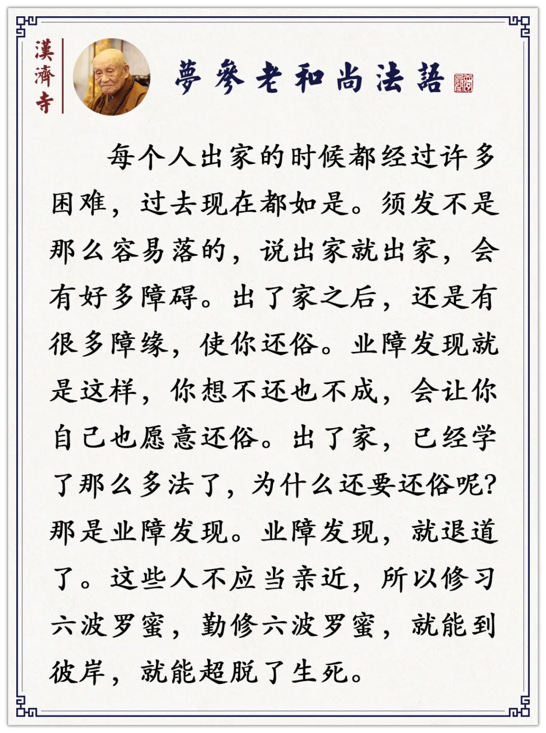 有些事都是净缘,不是染缘,染缘你也能克服,净缘你没办法。净缘,好比你在这修行,人家让你做方丈,当人天师表,当然这是好事、净缘,但是你的修行可断了。有人拿这样说:“唉呀!你这自修,自了汉。你过去,对于公众是行菩萨道,多光明,多正大。”去吧!行菩萨道去吧!完了,菩萨道也没行成,声闻道也没修到,况且所修的不见得是声闻道。这叫什么?这叫循业发现。