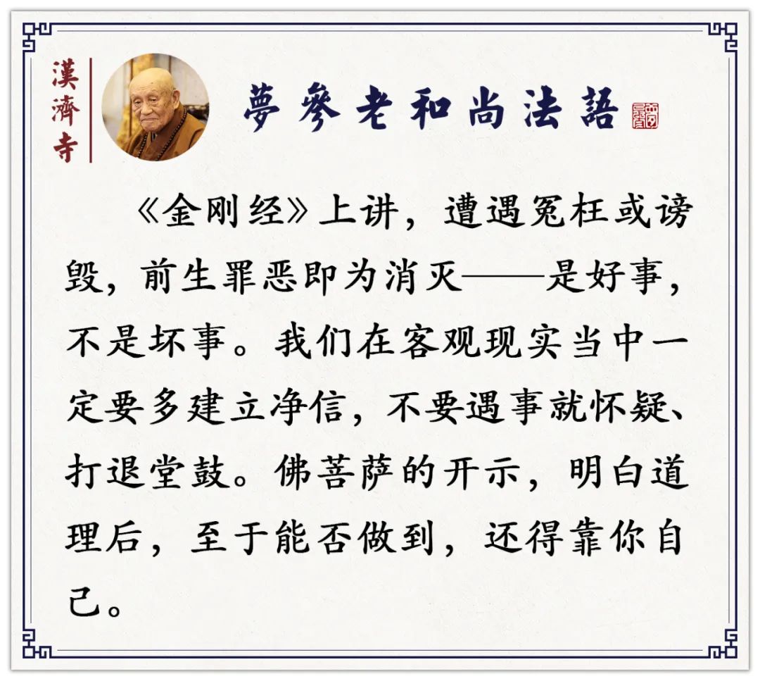 有时我们认为是冤枉的业,是法律制裁得不公,或者处理你这件事处理得不正确,这就冤枉了。不过在地狱里没有一件冤枉事,都是你自己做的,自己去感的果。乃至于狱卒、阎王爷,这些都是由你自己的业所变现的。说有,确实是有;说没有,根本如梦如幻。当你没业,没有;有业,就有。人间也如此,因为过去有业,你现在的果就不同了。像我们每个人的生活享受都不一样的。有穷、有富,有寿命长的、寿命短的,有聪明的、愚痴的,为什么呢?这是过去的业感到今生的果。但是能生到人间,毕竟你还是种了善业,不然不能生为人身,而堕到饿鬼、地狱、畜生等三途去了,你生为人了,是善业多于恶业。要是你现在不能发扬善业,反过来造恶的话,地狱也好,饿鬼道也好,畜生道也好,你一定会感果的。所以我们要认识这种因果相互的关系,要经常这样观想,这样你就不会怨天尤人。不要想种种的方法害人、整人。你要是明白这个因果了,绝不会去害人。所以今生你被人家整;或者你到哪儿去了,被人家清算;或者经常是受害者——那么现在你是受害者,过去你则是害人者,这是循环的。如果过去没有害人,你会感善果的。我们在《金刚经》上说,你今生被人家轻贱,被人家看不起,或骂你、侮辱你,你应当高高兴兴地接受。你想:“我过去的罪业就消灭了,再也不受了。”如果你要是心里头不平——中国有一句俗话:“狗急跳墙,人急造反。” 而被逼得生存不下去了,又没有因果律的观念,就会铤而走险,杀人放火,会造出更大的业了。要报复,什么事都做,越造业,来生也就可知了。我希望大家对这个罪,作深刻的观想。罪就是业果成熟了,代表你做的事情不合理,不但不合你自己的性理,也不合人间的情理,所以你必须得受苦。
