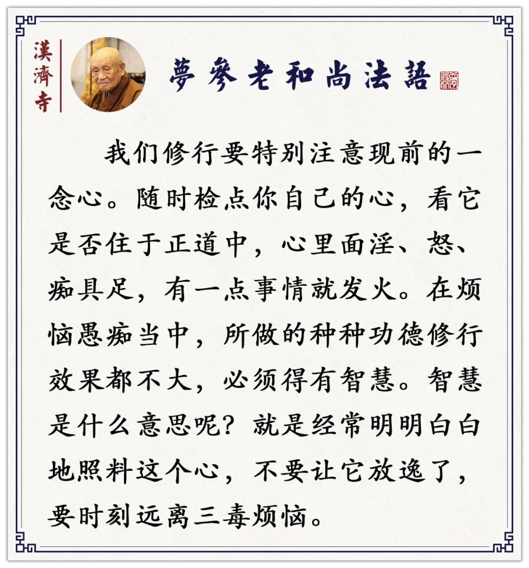 我现在教给你们一个最殊胜的法门——就是照看你自己的心。从早上一醒,一直到晚上睡觉,你都要观看自己一天的心在想些什么。由心作主宰,支配你的身、口。像我们现在住在五台山,要修文殊法,心应与文殊菩萨相应,“文殊如何行为,愿我行为亦如是”——就是文殊菩萨怎么发愿、如何去行,我也如此发愿去行。在修行中,我们自从受了三皈依之后,每天一睁开眼,就要“皈依佛、皈依法、皈依僧”,最少念十声;晚上上床要睡着时,也提起正念,“皈依佛、皈依法、皈依僧”。就这样二十四小时相续地连续,能够做到这一步,就不得了啦。我对每个受三皈依的弟子,我都要嘱托他们:你皈依的是一切佛、一切法、一切僧,我只是代表相。因为现在有很多人起偏执著,认为皈依这位师父,就不能再皈依别的师父,这是极端错的,是灭三宝的。讲经说法也如此,不能讲这部经就说这部经好、说其它经不好,这就造了谤法的过。不能执著于哪一部经。佛在《金刚经》里有讲:“法尚应舍,何况非法?”我们要明白这个道理,无论大乘、小乘,显宗、密宗都是佛法,皆随众生的机而说,不能互谤。所以我们一天当中,按佛教的教理做、在我们心里观想问题的时候、修行的时候,一定要圆融。要圆融就得有智慧,要想得到智慧,就要学习观照。《心经》第一个字就是“观”,“观”就是思惟修,思惟修就是禅定,叫“三昧耶”。你修行能进入三昧耶时,你做事情就熟练善巧了,这就叫三昧。观世音菩萨修的三昧就是“观”,他观得非常自在,观一切事物是假;随顺众生行大悲心,众生又是真的。放得下、提得起,观世音菩萨用的是“深般若”,用甚深的智慧来观照,所以观一切法都不存在,是幻有,但又随顺一切法来利益众生。